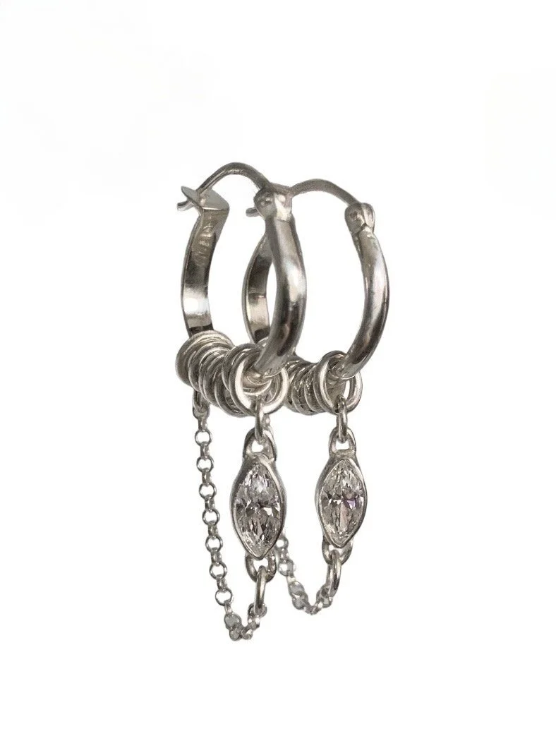 SILVER Categories: All RINGS GOLD SILVER EARRINGS GOLD SILVER 18CT GOLD PLATED NECKLACES GOLD SILVER All / EARRINGS / Marquise Hoop Earrings With Chains $400.00 Diamond Hoop Earrings With Chains $400.00 Silver Marquise Hoops $390.00 Silver Drop Earrings $330.00 Silver Organic Hoops $220.00 Silver Marquise Helix Chain $180.00