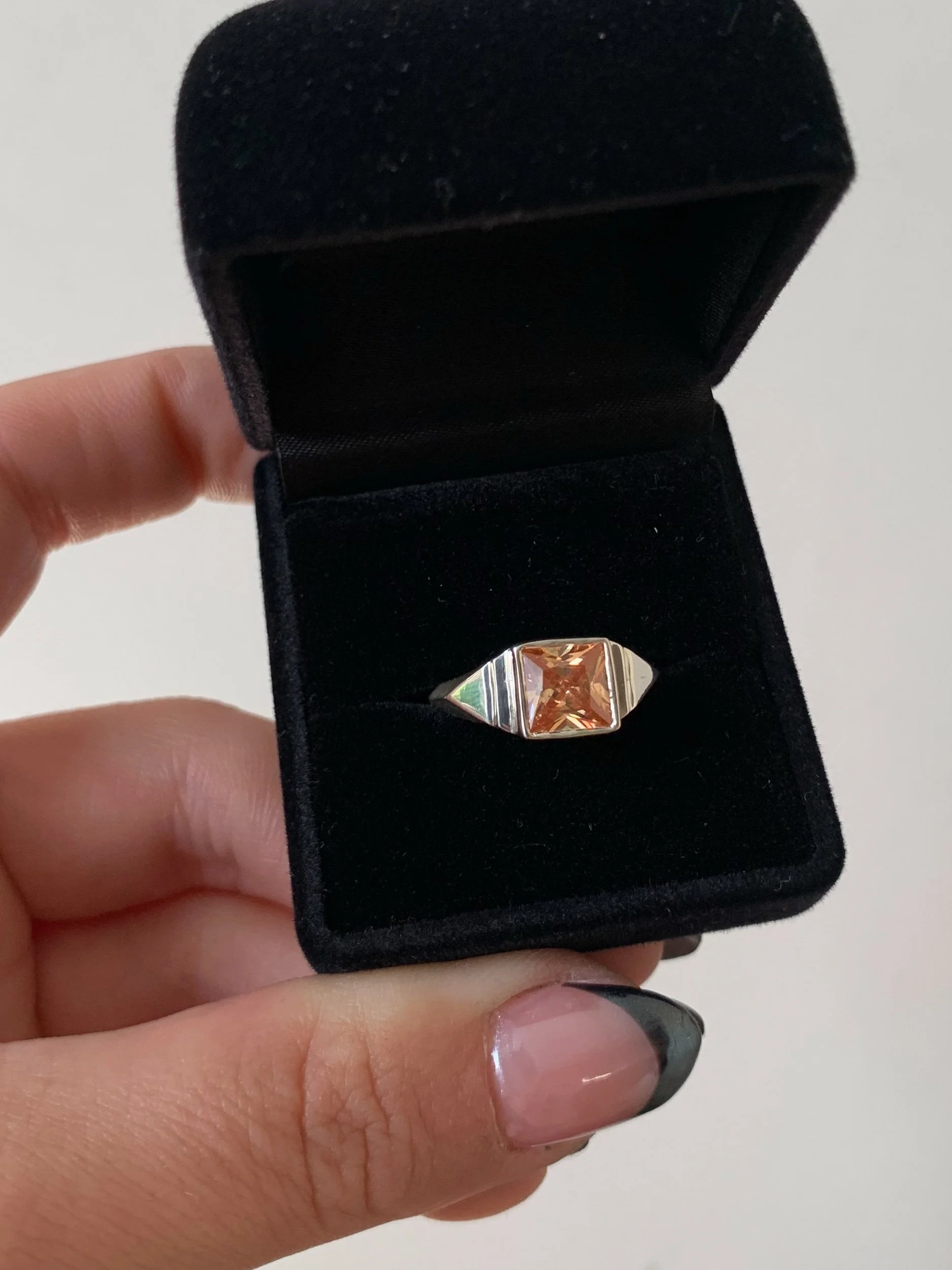 Handcrafted featuring a 7mm champagne cubic zirconia with an architectural bezel setting.